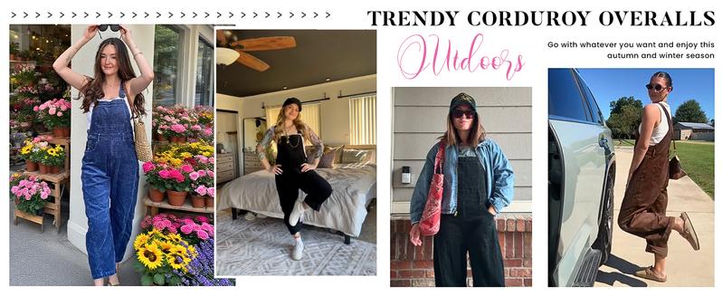 Corduroy overalls are perfect for every season. The adjustable jumpsuit can be paired with T-shirts, shirts, or sweaters for a friendly, natural, and comfortable casual style; or it can be paired with tank tops, sheer lace tops, belted jackets, sunglasses, and other accessories for a sexy and relaxed travel look.